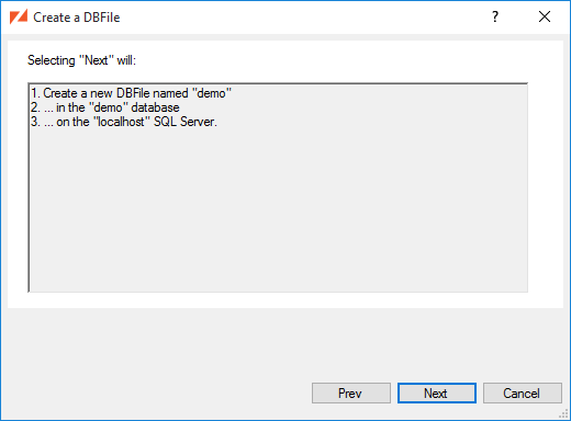 If you select a DBFile that contains tables from a different SQL Server instance, you will be prompted to supply connection details.